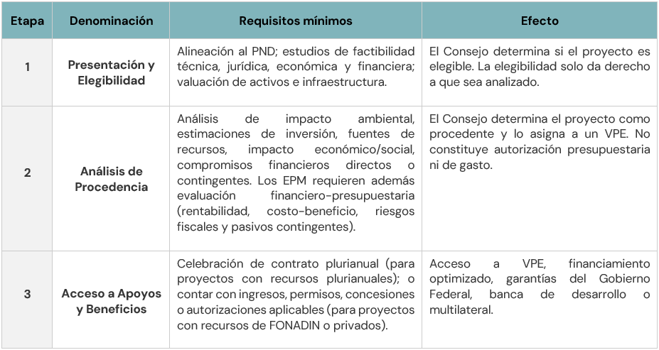 El FONADIN (Fondo Nacional de Infraestructura) y otros fondos públicos podrán constituir VPE para mejorar las condiciones de inversión de los Proyectos Elegibles.
